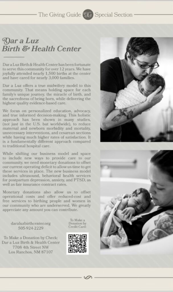 - Cash or Checks. Please make checks payable to: Dar a Luz Birth & Health Center, 7708 4th Street NW, Los Ranchos, NM 87107